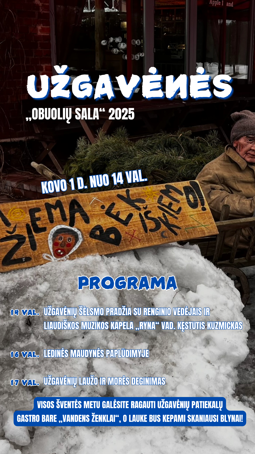 Visos šventės metu galėsite ragauti Užgavėnių patiekalų gastro bare „Vandens ženklai“, o lauke bus kepami skaniausi blynai!!!